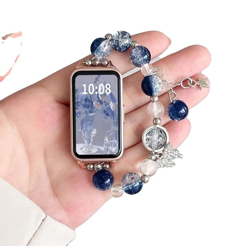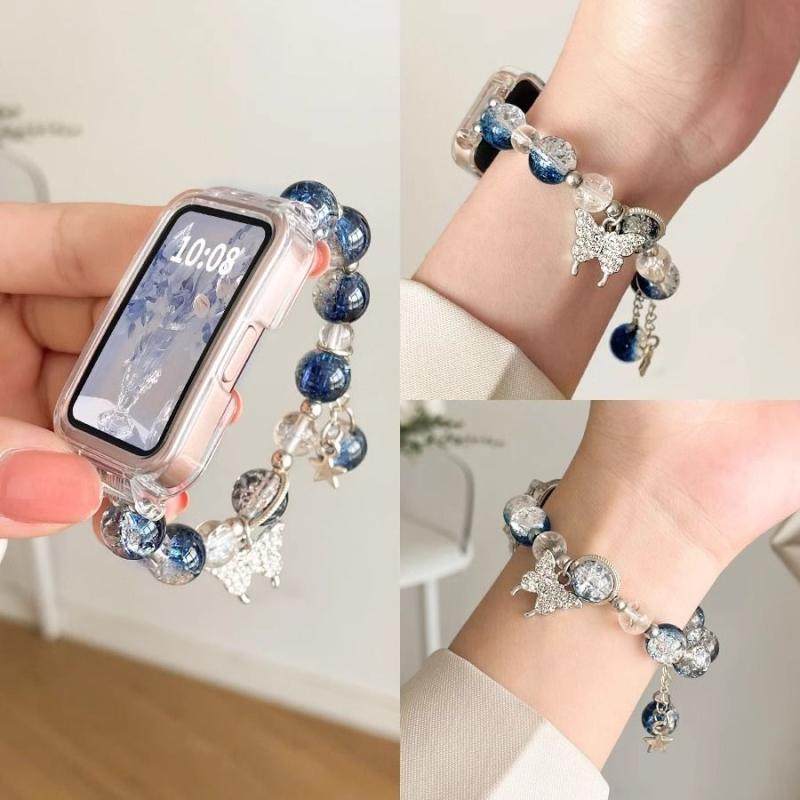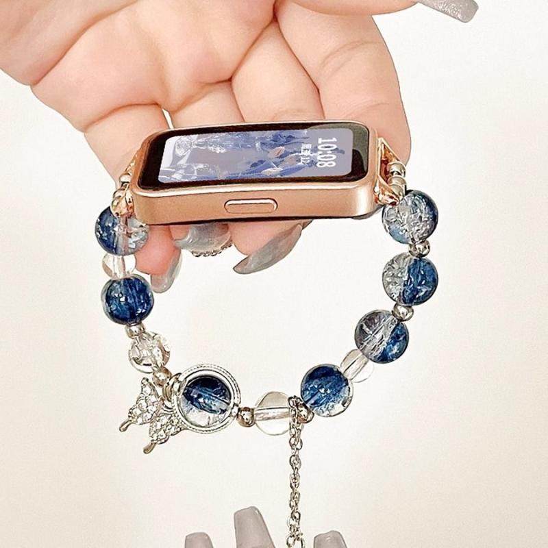 适用华为手环9表带8荣耀7夏季6替换八九代运动智能腕带nfc女生夏天表链编织6pro新款4e猫眼石蝴蝶串珠配件