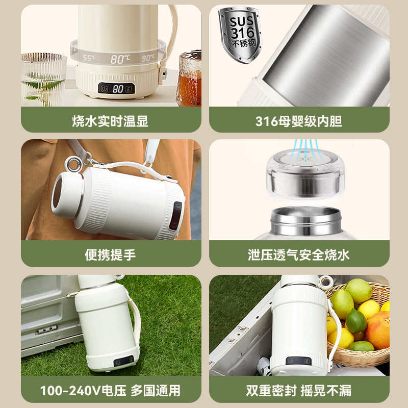 贤宝能便携式烧水杯电热水杯旅行烧水壶电热杯保温杯恒温大容量