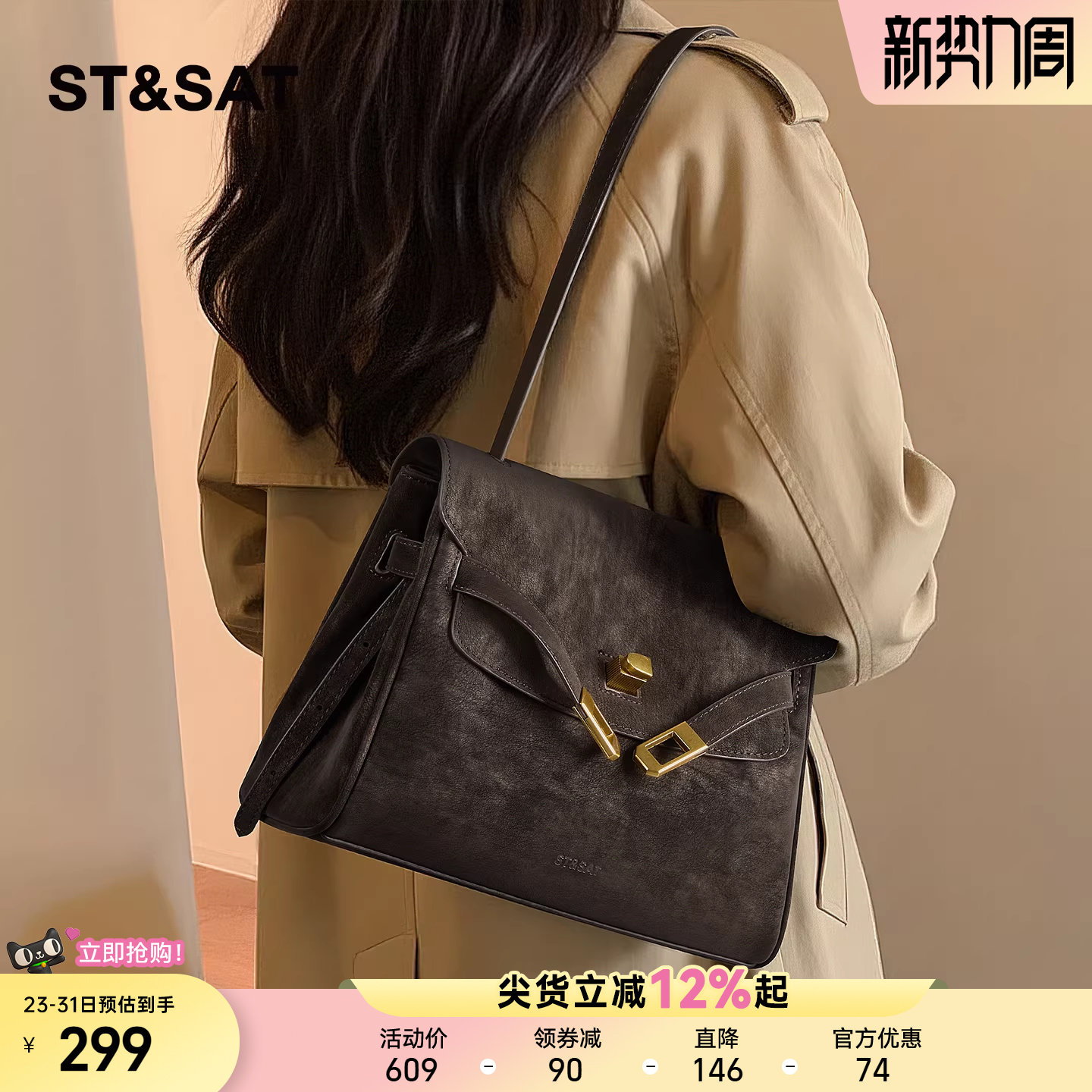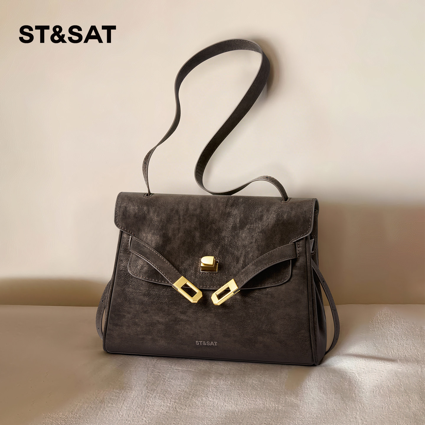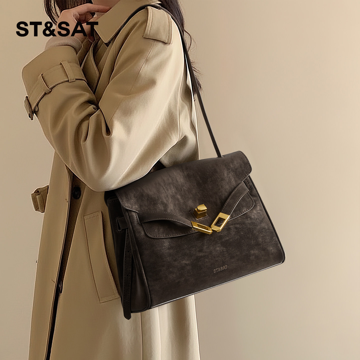星期六擦色凯莉托特包女式26新款通勤翻盖公文邮差包大容量腋下包