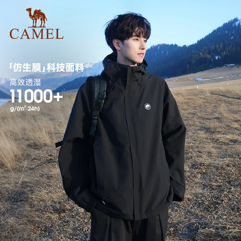 骆驼熊猫雨壳三合一冲锋衣男款户外防风防水三防登山服外套幻影黑