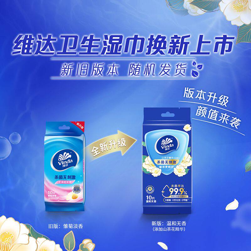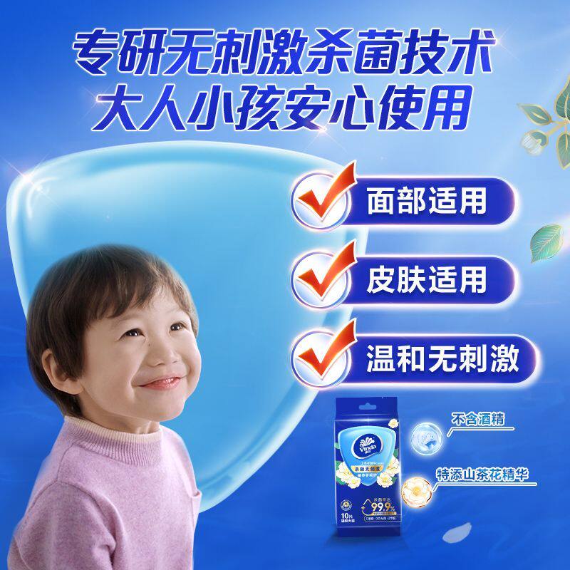 维达湿巾山茶花杀菌独立小包装湿纸巾随身便携式外出湿巾清洁卫生