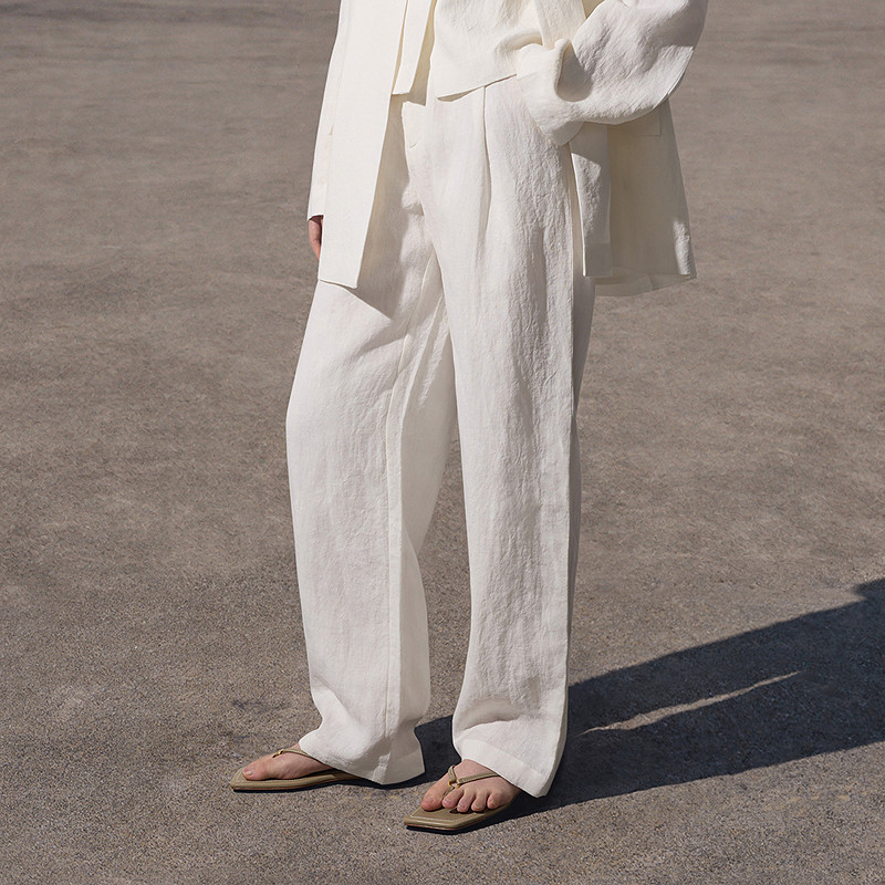 【周迅同款】LESS夏环保白色简约宽松舒适亚麻休闲裤女2P4E13790