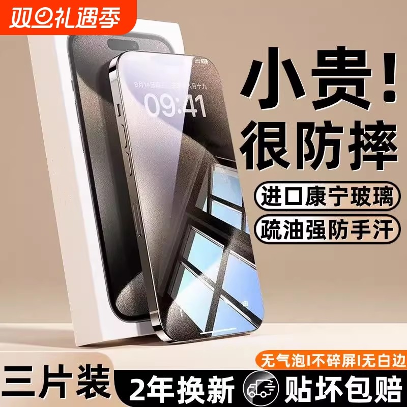[不沾指纹]适用iPhone17/16钢化膜苹果15/14手机13promax防窥12全屏XR/xsmax全包11贴X防摔8por高清plus