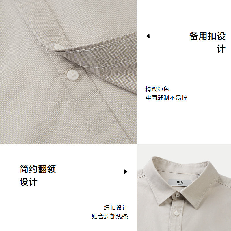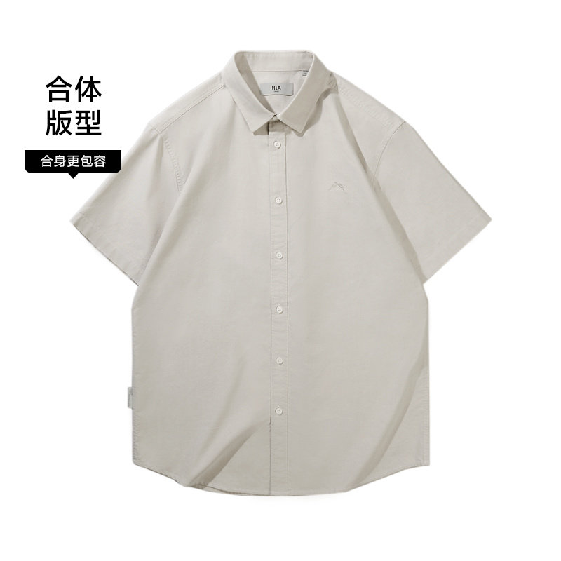 HLA/海澜之家山不在高系列短袖休闲衬衫春夏纯棉牛津纺上衣男