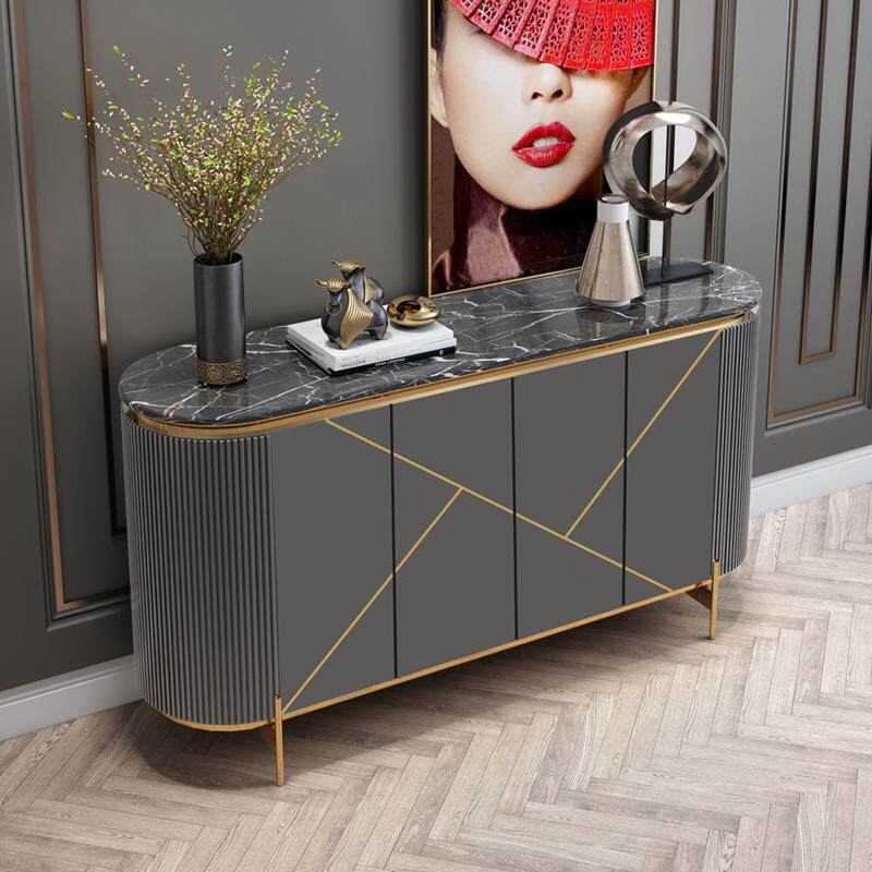 美式轻奢餐边柜现代简约大理石客厅入户进门玄关柜靠墙收纳储物柜