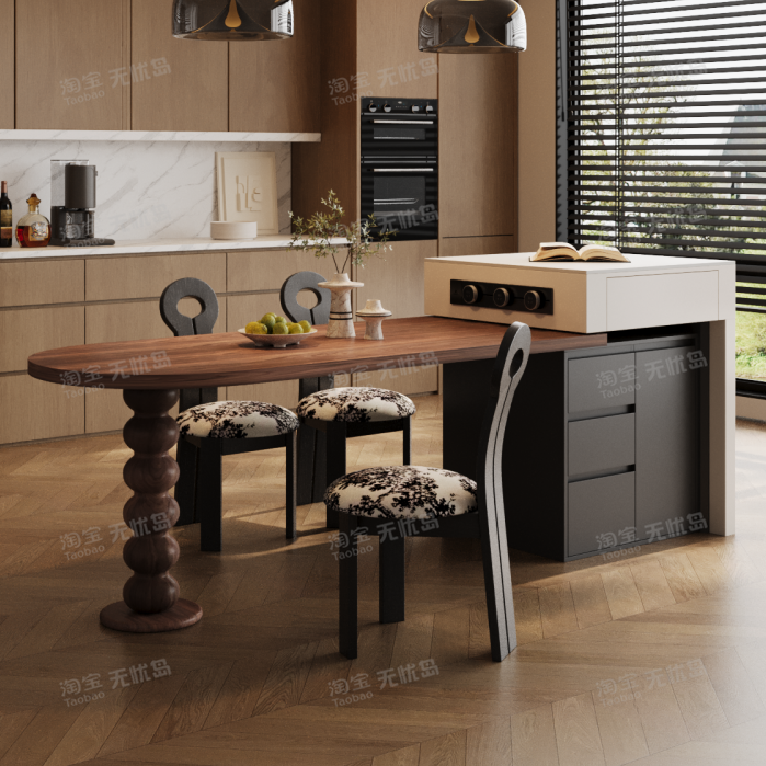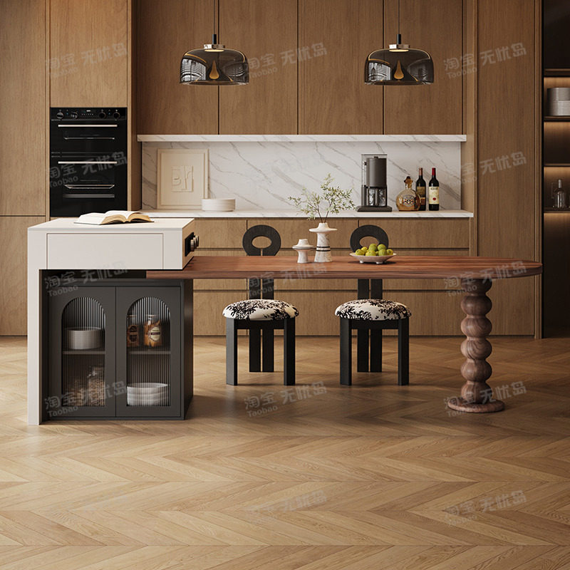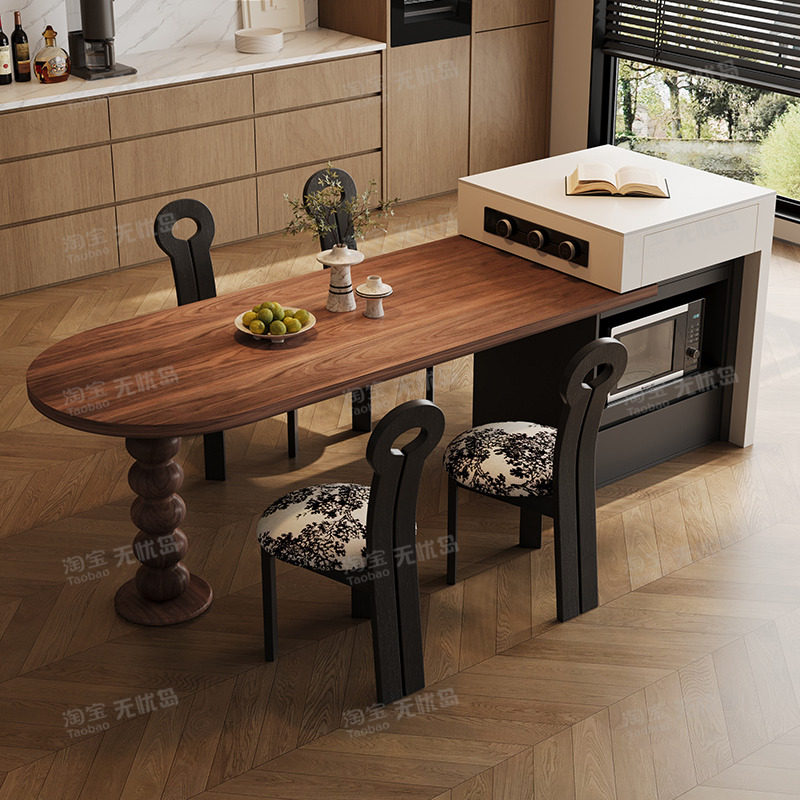 意式极简岛台餐桌一体家用小户型现代简约中古风可伸缩带电磁导台