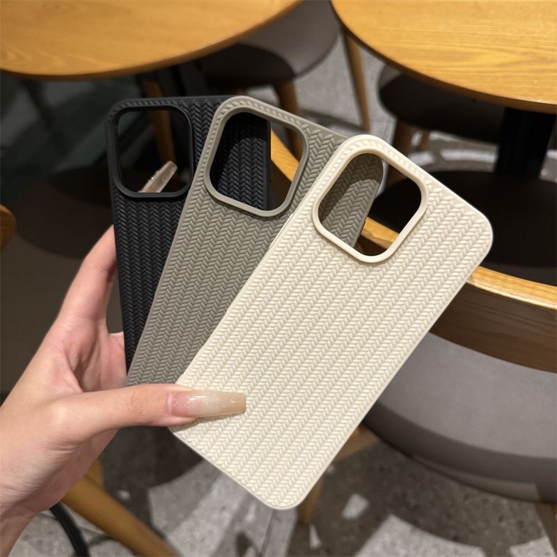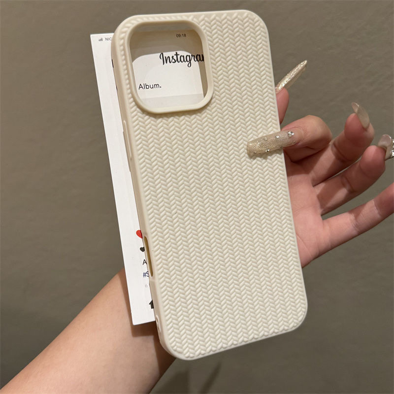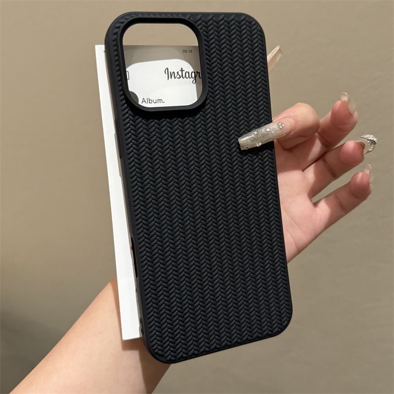 适用苹果16promax手机壳黑色高颜值iPhone15promax编织纹古董白14男女爆款13简约16pro全包防摔保护套12/11软