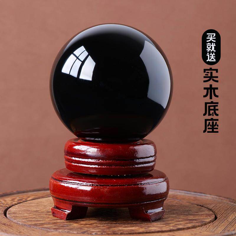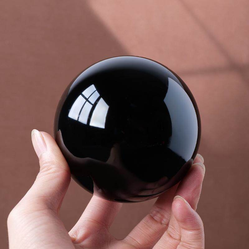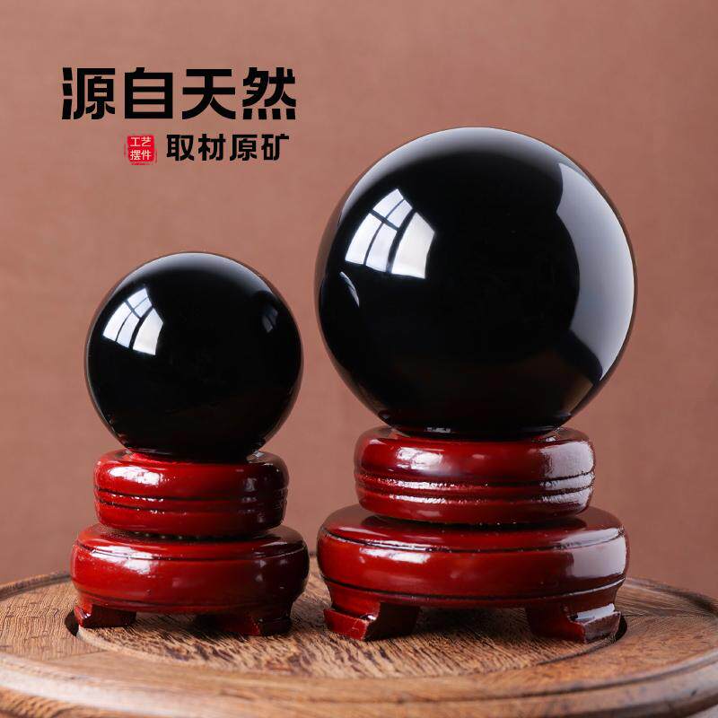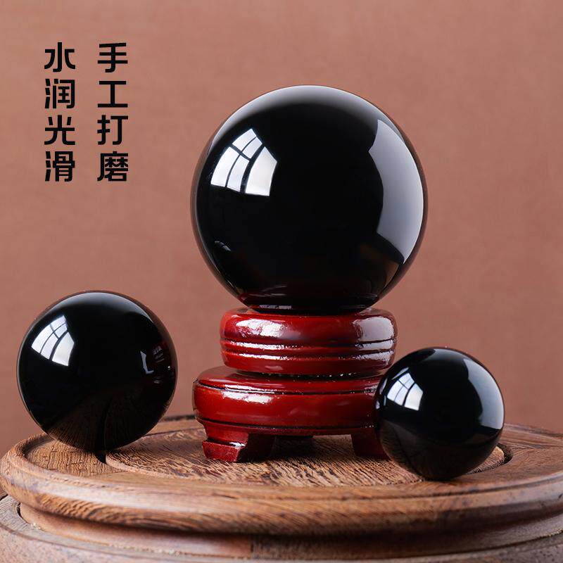水晶球天然黑曜石摆件原矿大号黑色打磨客厅办公室玄关工艺品装饰
