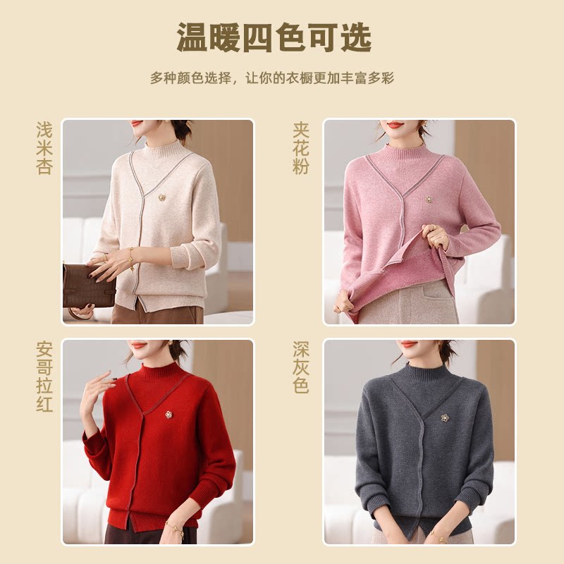 恒源祥羊毛衫女式毛衣新款半高领毛线衣春秋官方正品针织衫打底衫