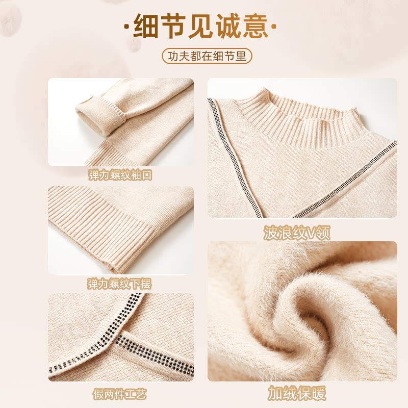 【付定!烈儿超值年货节】妍影妈妈冬装假两件盘扣加绒针织衫