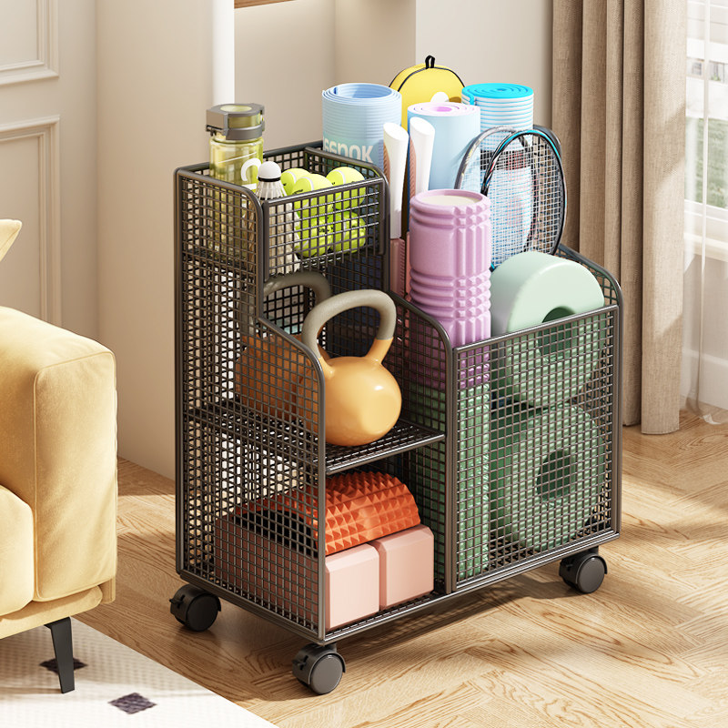 瑜伽垫收纳筐家用运动健身器材箱哑铃篮球羽毛球拍夹缝移动置物架