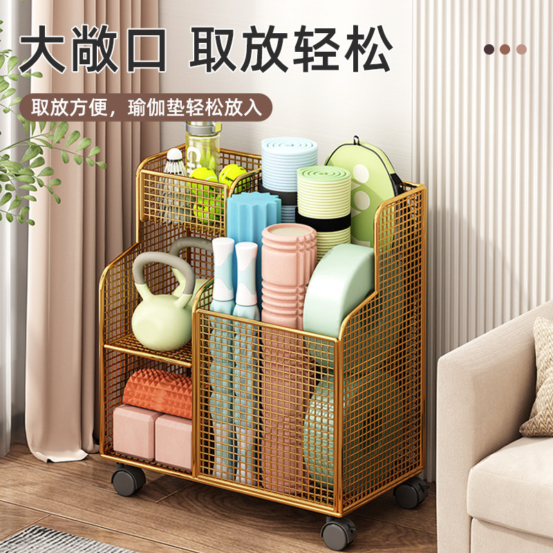 瑜伽垫收纳筐带轮家用运动工具泡沫滚轴整理神器健身器材置物架子