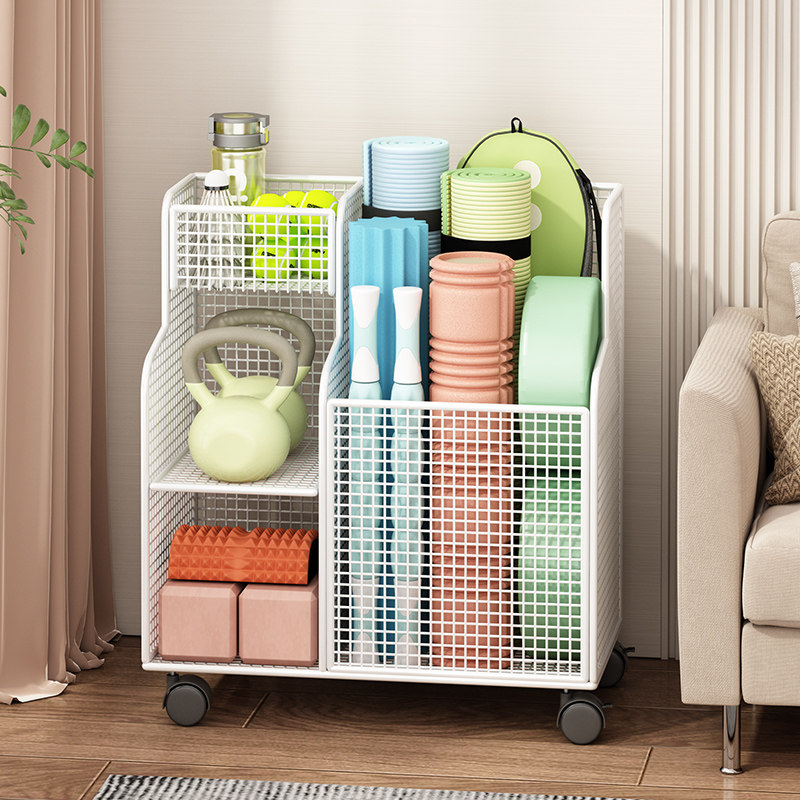 瑜伽垫收纳筐健身运动器材收纳架带轮家用篮球羽毛球类夹缝置物架