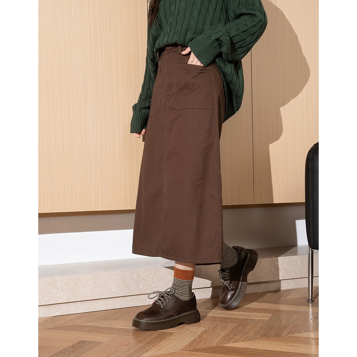 唐狮秋冬季新款女半身裙流行美拉德咖色显瘦a字长款裙子WPTD