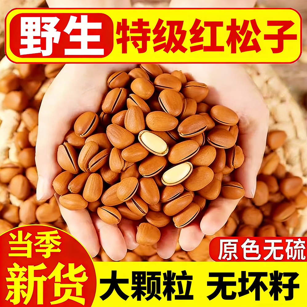 2025东北纯野生开口松子500g新货特大手剥松籽散装大颗粒手拨坚果