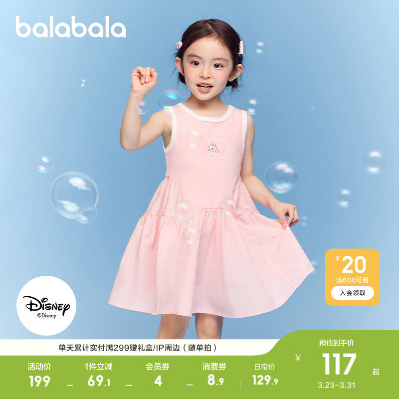 【迪士尼IP】巴拉巴拉女童裙子儿童连衣裙2026新款夏装无袖背心裙