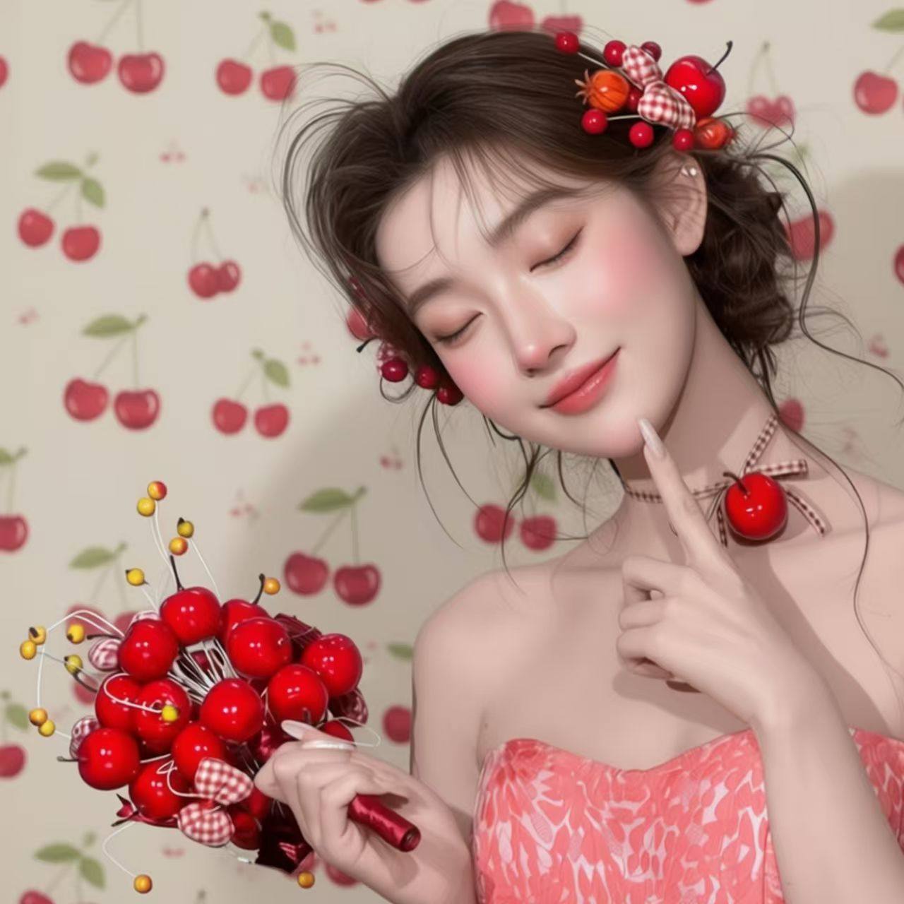 红色仿真苹果石榴发夹新娘订婚结婚发饰敬酒头饰发卡配饰樱桃水果