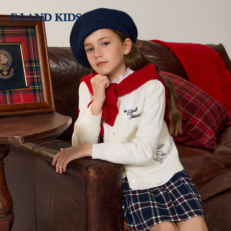 eland kids衣恋童装女童毛衣26年春季新品学院风含绵羊毛针织开衫
