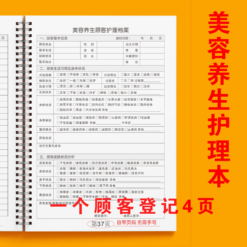 养生顾客登记本美容院身体理疗信息资料档案本护理店会员客户资料档案记录册定制A4活页