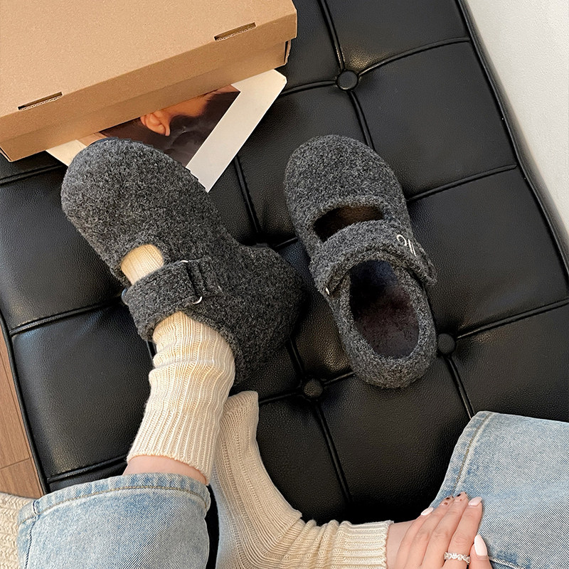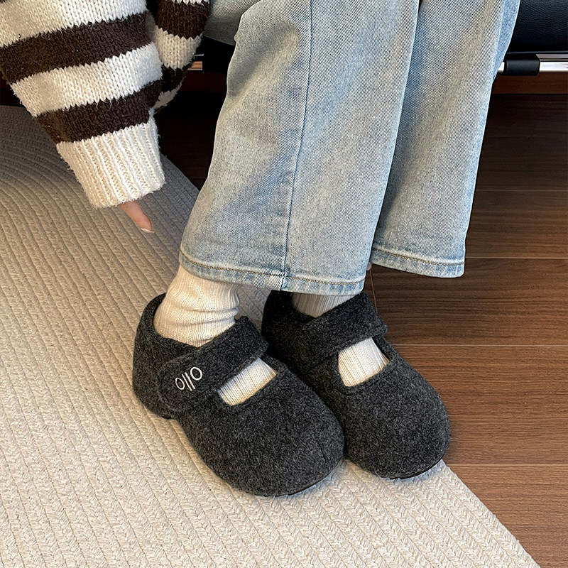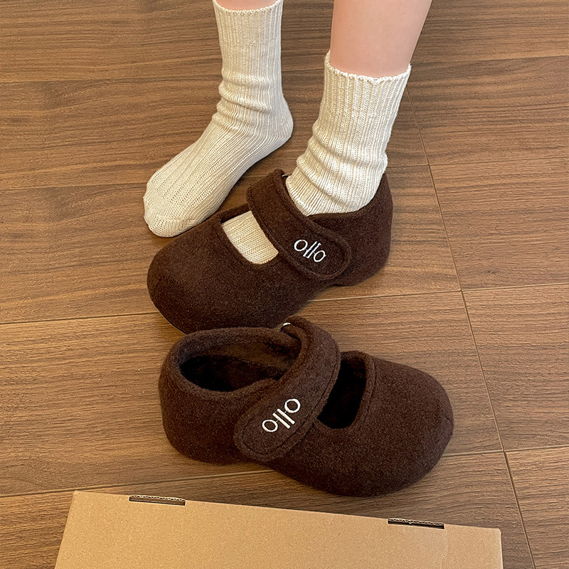 加绒复古内增高厚底玛丽珍毛毛鞋女冬外穿2025新款增高保暖棉鞋子