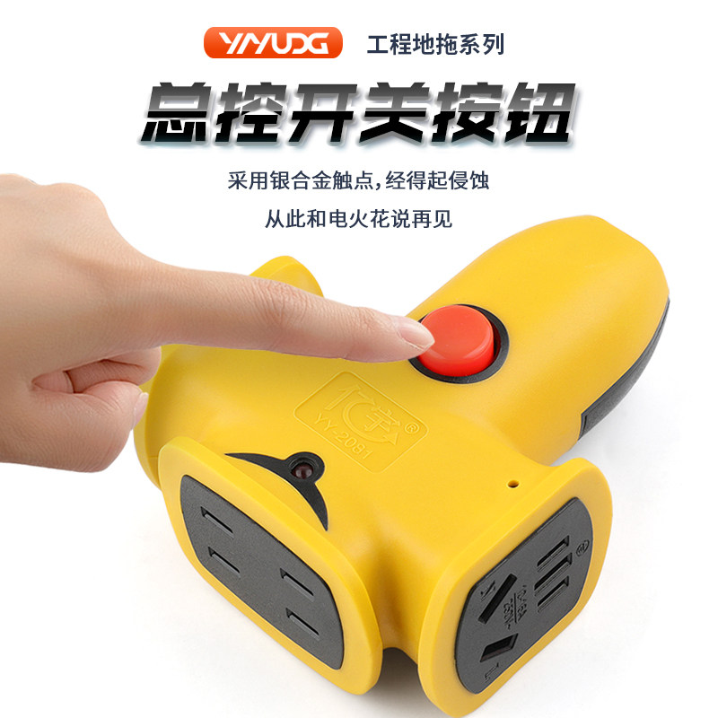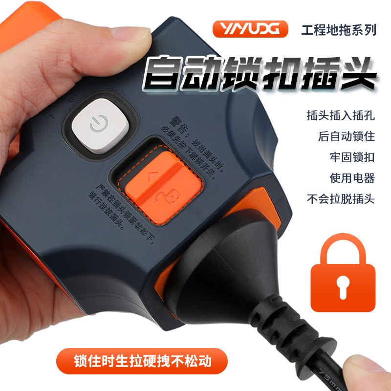 拉不脱带锁插座地拖防脱工地插板不带线排插防脱落大功率自锁插线
