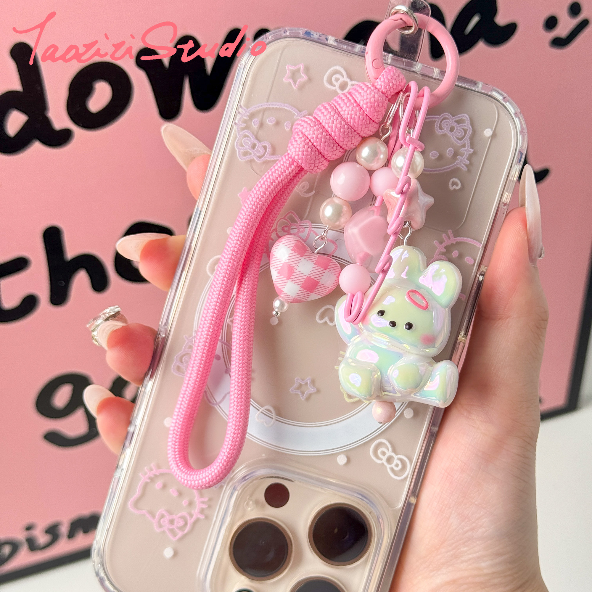 奢华高级感水晶手提链条手腕短挂绳带夹片壳钥匙扣包包挂件潮