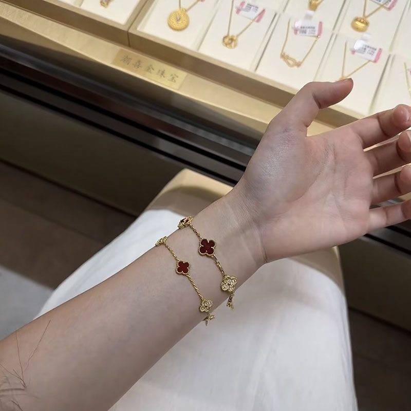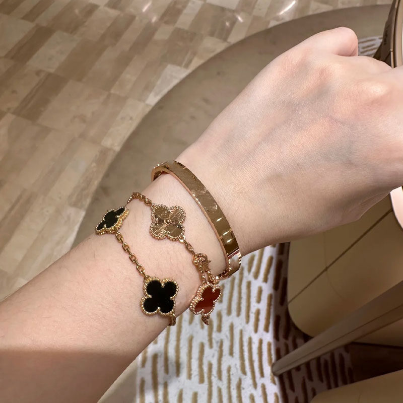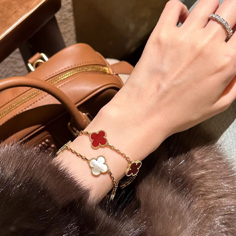 2026新款四叶草玛瑙石五花手链女轻奢高级感18K玫瑰金白金色手串