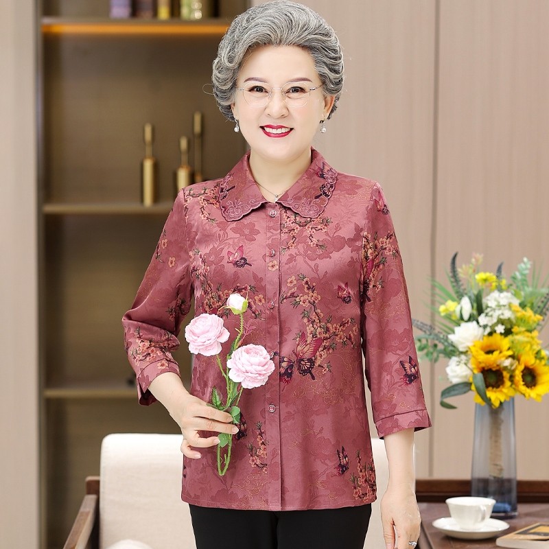奶奶夏装开衫妈妈薄款衬衣老年女衣服中老年人女夏季衬衫套装上衣