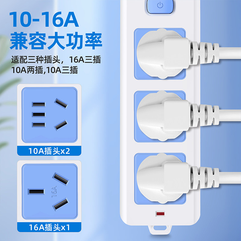 4000W大功率插排带线10a转16a插座转换器家用空调热水器电磁炉