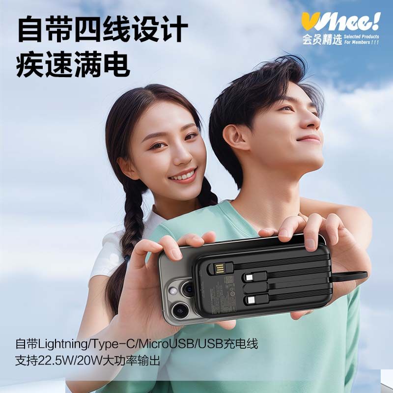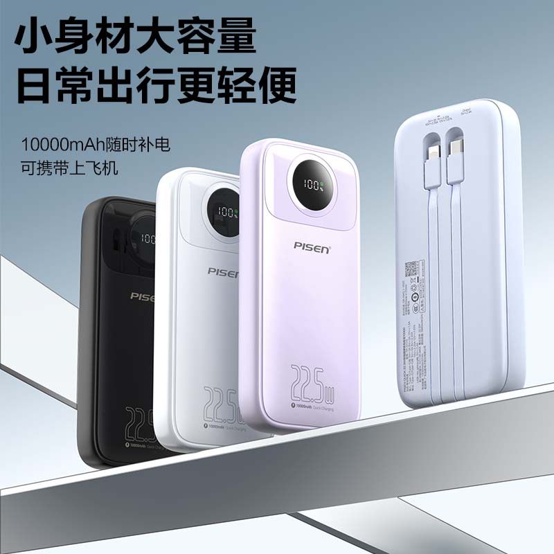 会员精选品胜充电宝10000毫安超薄自带线22.5w快充移动电源适用苹果安卓