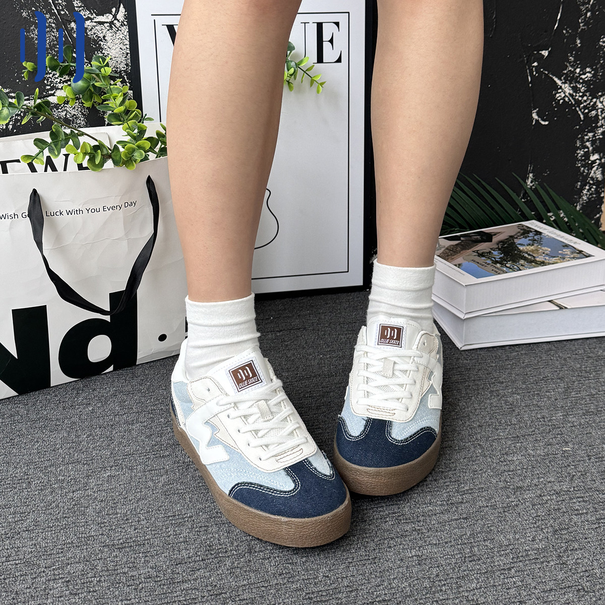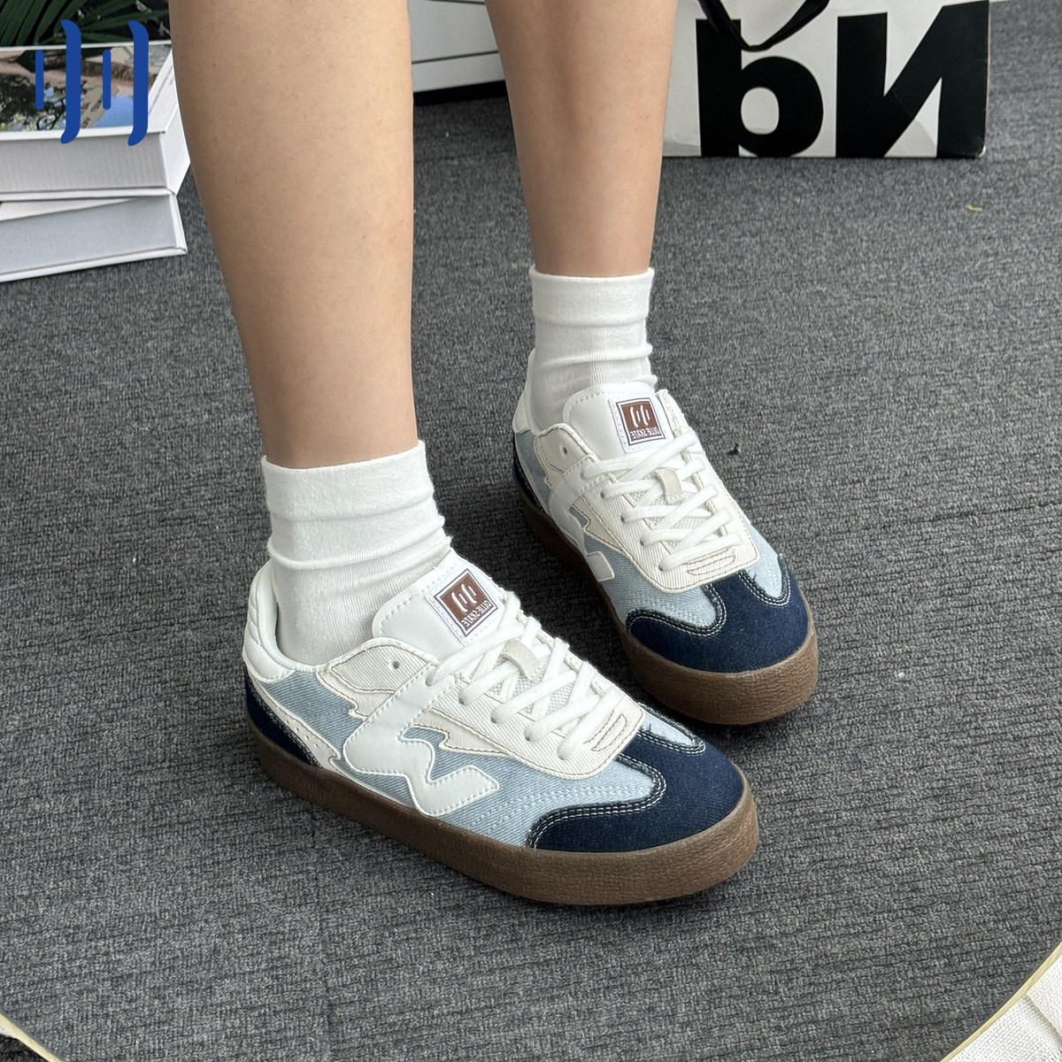 顽刻官方牛仔蓝配色皮质生胶底W系列男女国潮德训滑板鞋