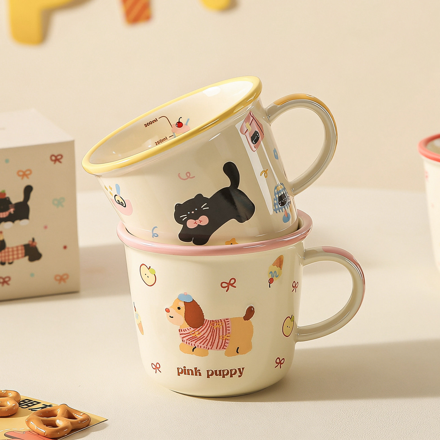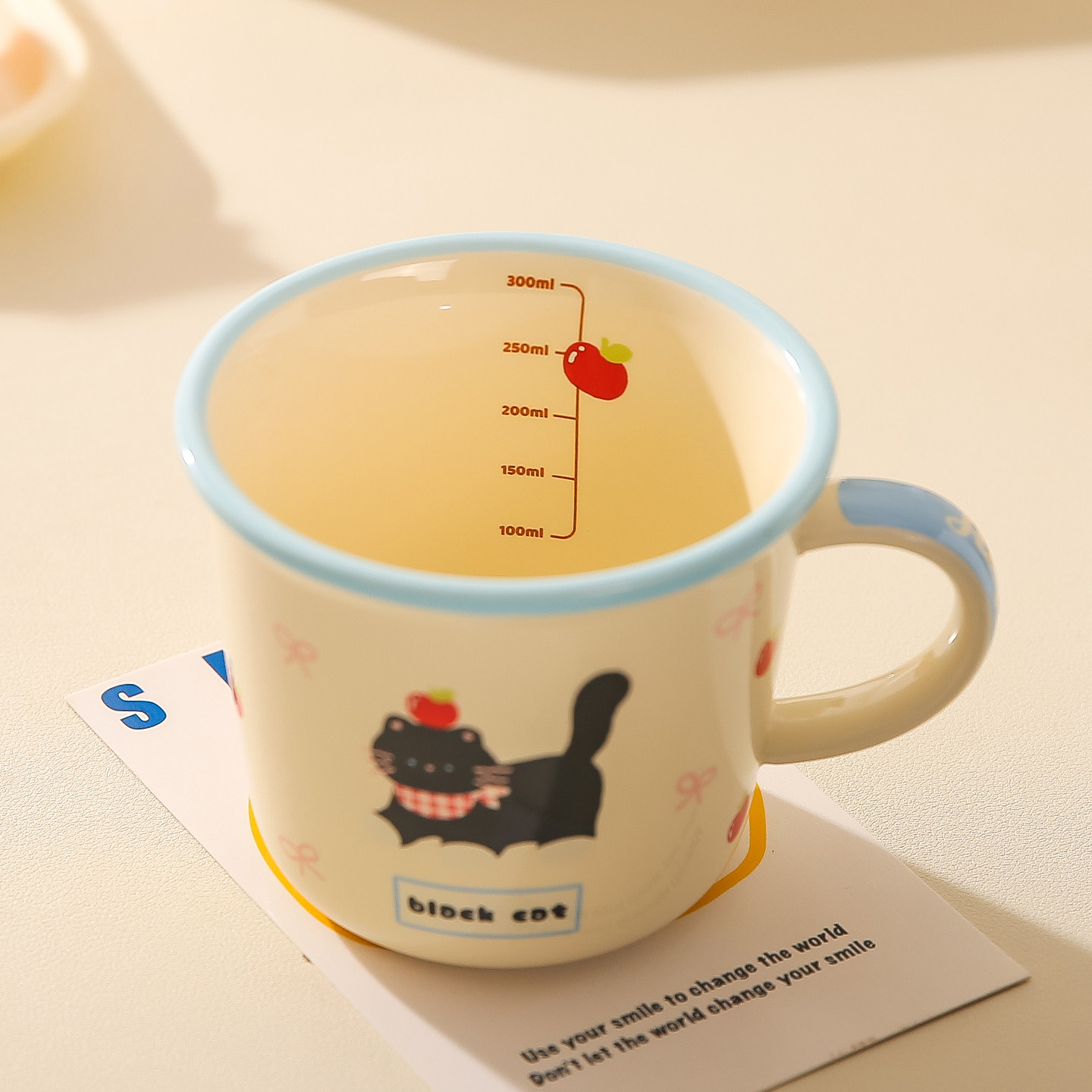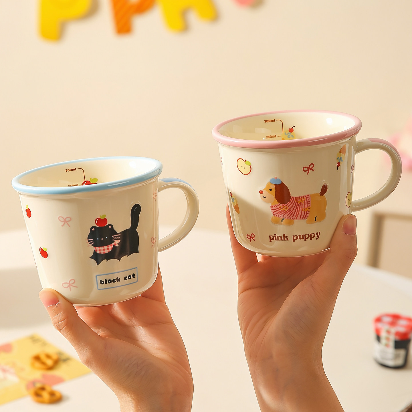 川岛屋牛奶杯微波炉可加热陶瓷马克杯儿童水杯家用早餐带刻度杯子