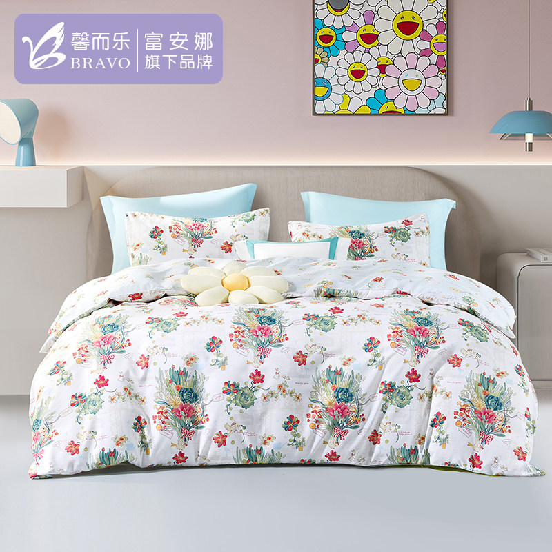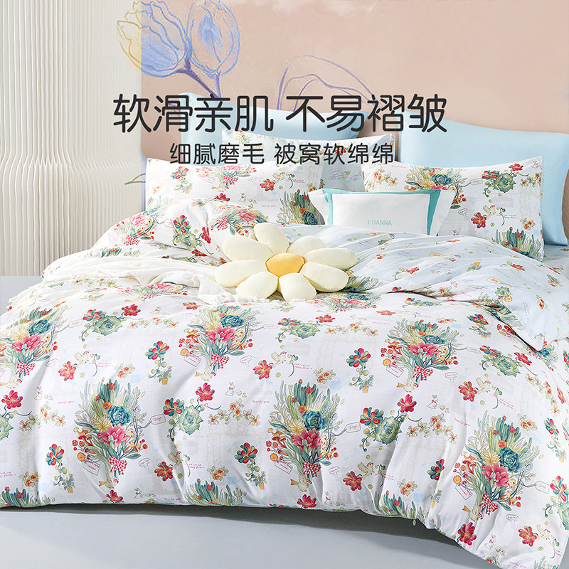 富安娜馨而乐家纺单件被罩学生宿舍被套被罩非全棉磨毛床上用品