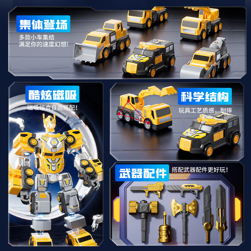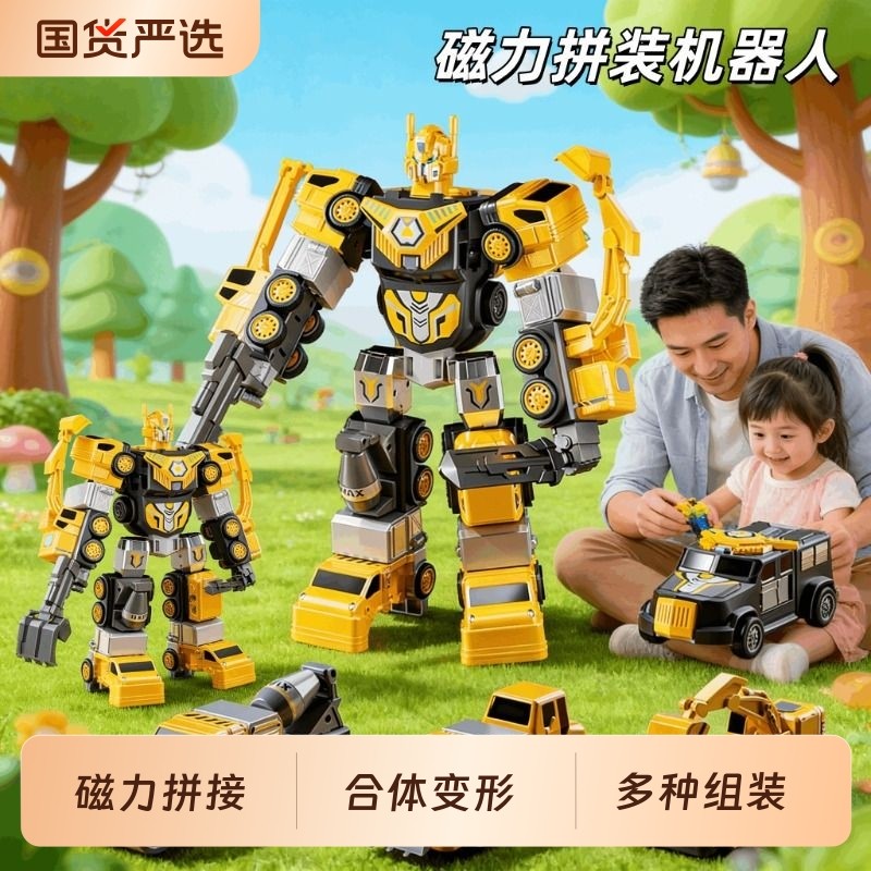 儿童磁力拼接玩具益智拼装变形工程车金刚机器人3岁6男孩生日礼物