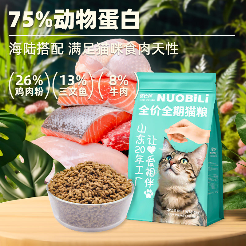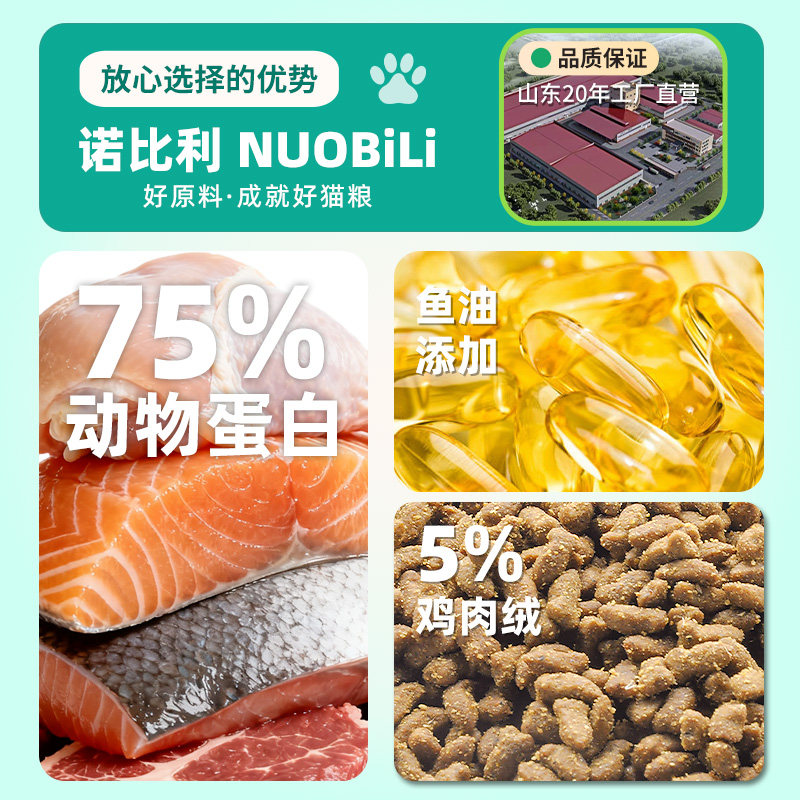 诺比利猫粮10斤成猫增肥发腮山东20年工厂鱼肉肉松三文鱼鸡肉全价