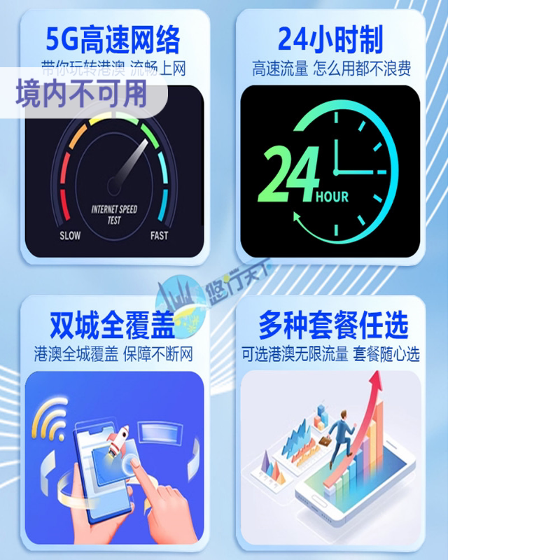 2GB/5GB/无限5G高速 随心选 全程不限速 24小时制算时使用时间 港澳IP 港澳口岸/香港澳门机场/深圳北站/西九龙高铁站可现场取卡 激活后1天内使用不满意 可直接联系客服全额退款 优质网络经得住考验 港澳通用 送取卡针,无需剪卡 到达港澳插卡即用