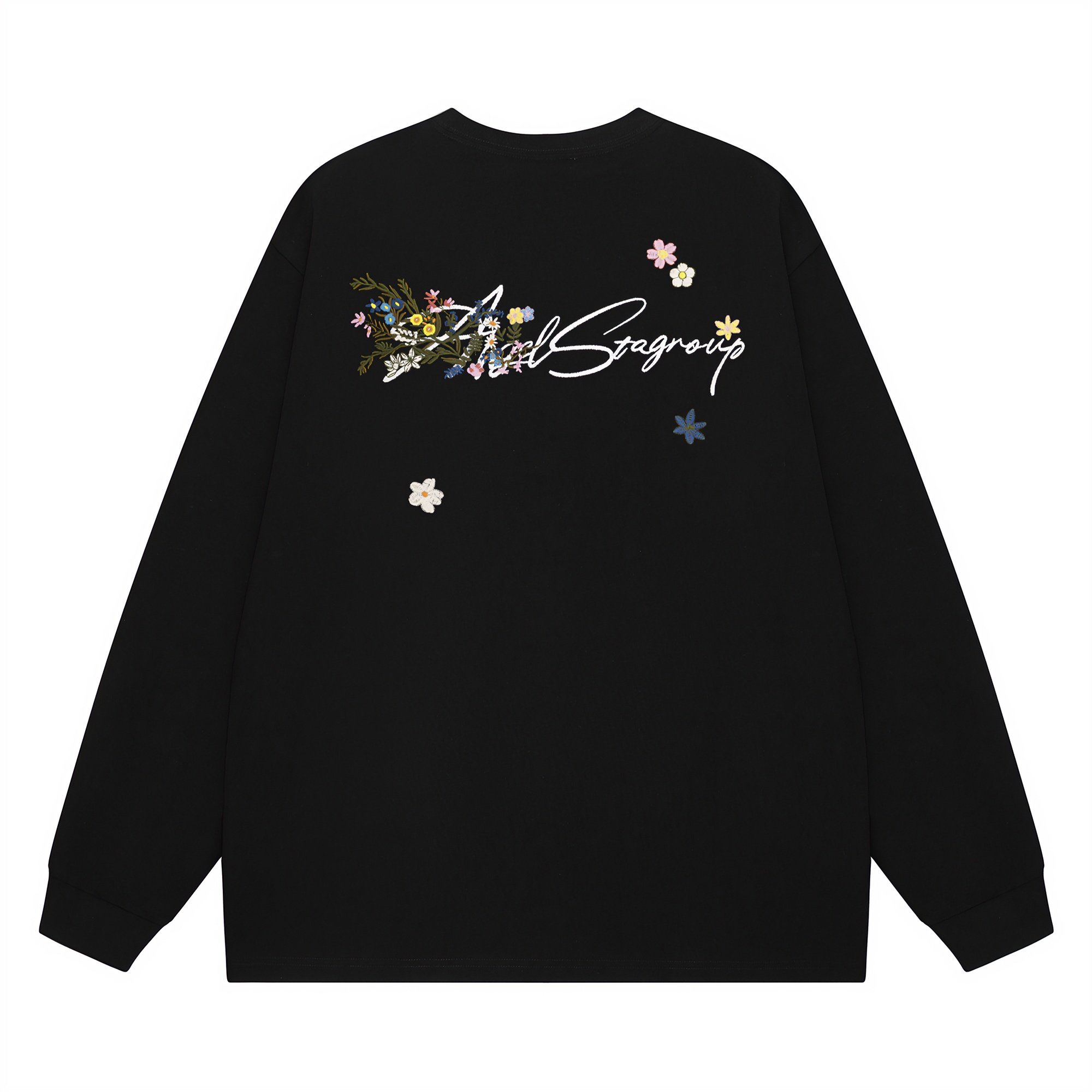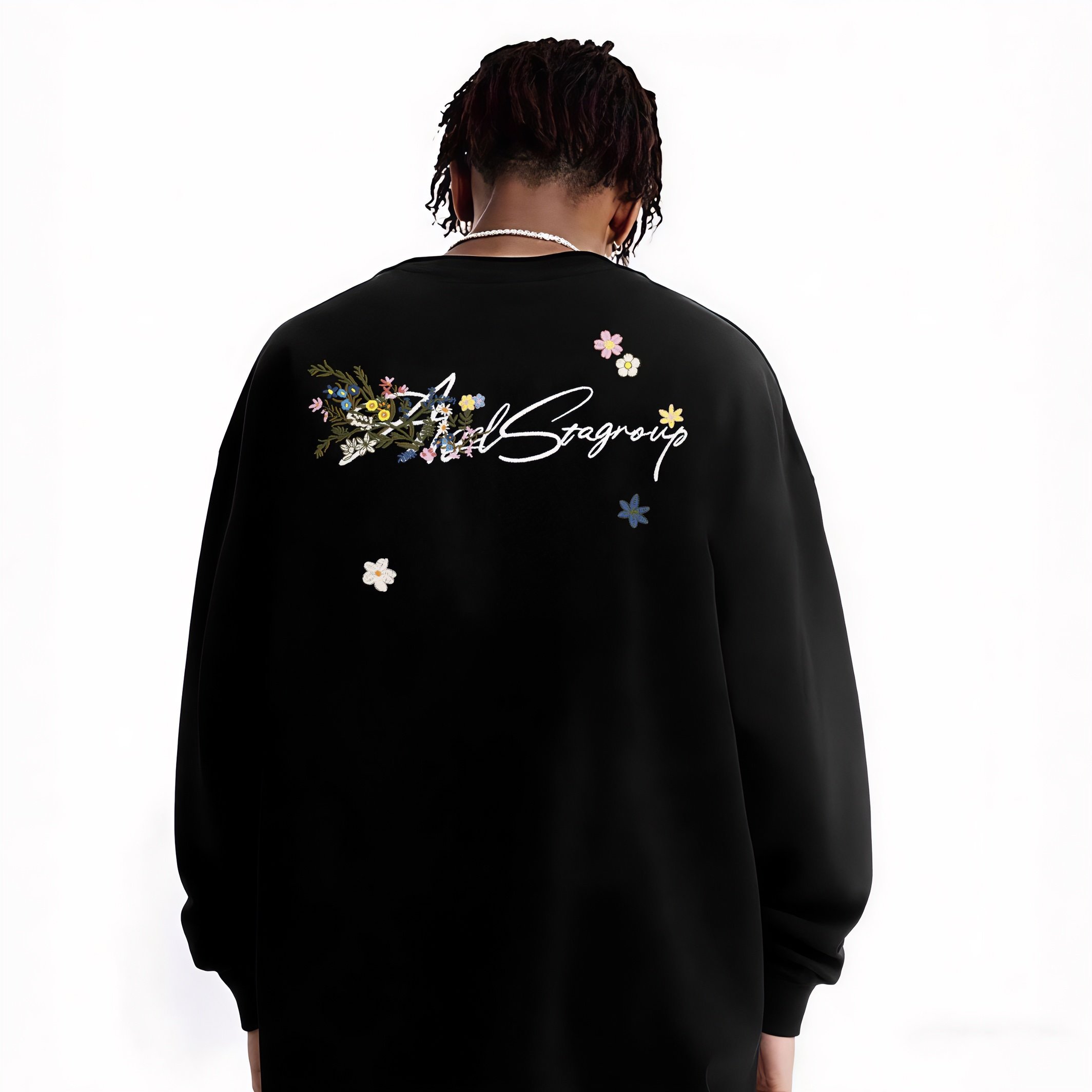 STA旗舰店美式花卉刺绣长袖男女潮牌复古高街重磅纯棉情侣卫衣