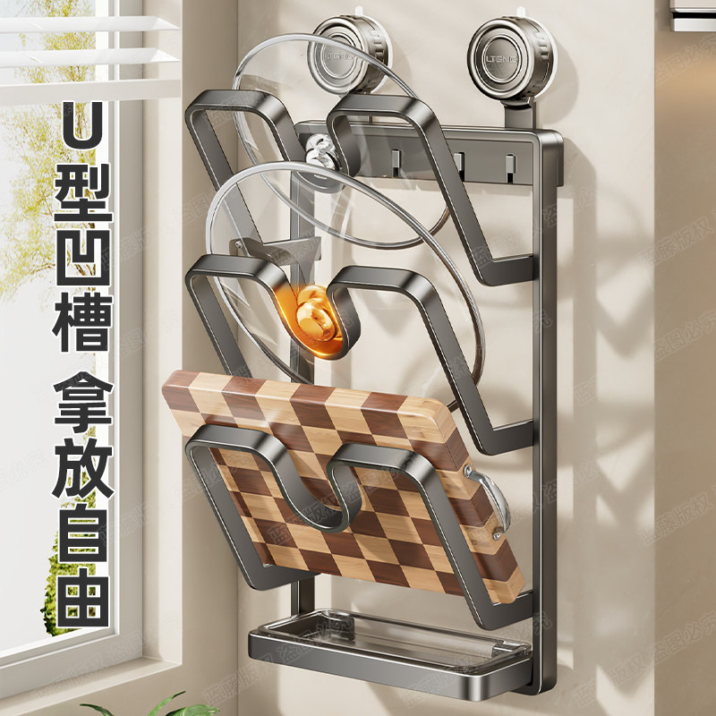 吸盘多层锅盖架厨房壁挂式砧板架带挂钩多功能沥水案板收纳置物架