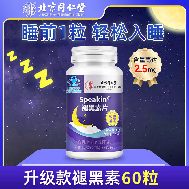 北京同仁堂褪黑素片60片剂安瓶助眠成人蓝帽官方正品含维生素B6