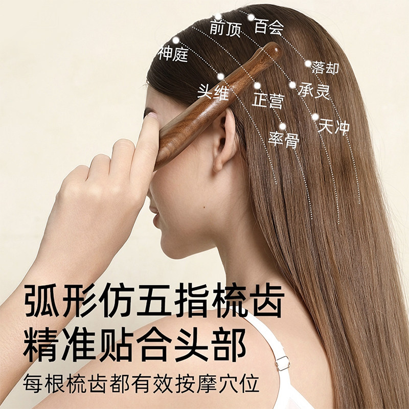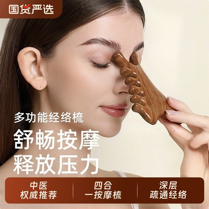 天然绿檀木四合一多功能按摩梳子头皮经络脱发防梳头部疗疏通神器