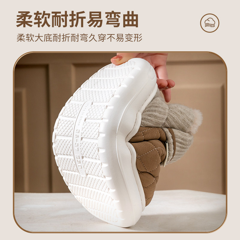 老人棉拖鞋女包跟冬季防水防滑厚底情侣加绒保暖带跟皮面男士棉鞋