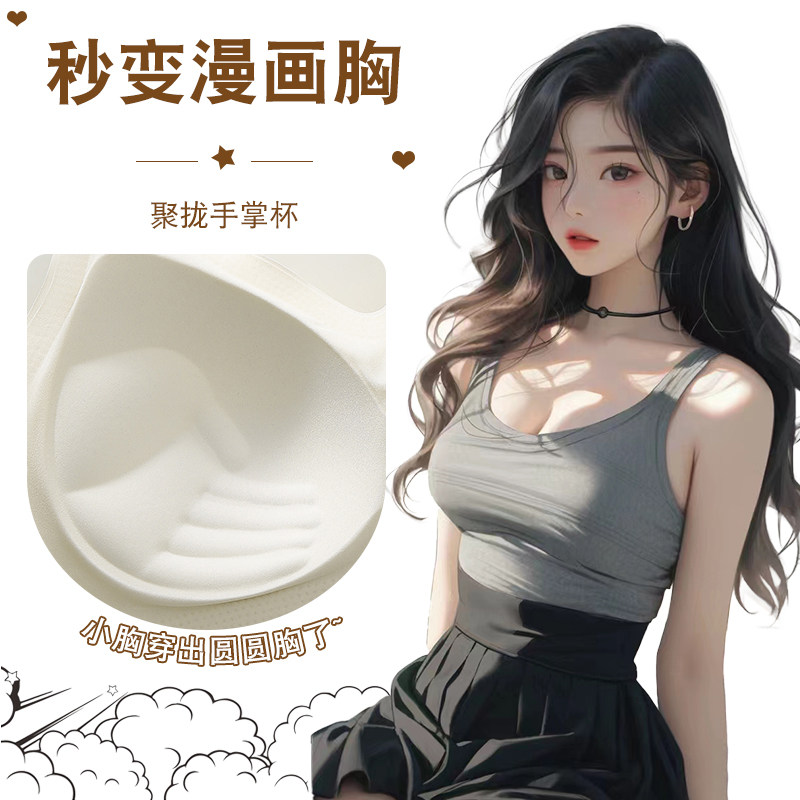 无痕内衣女小胸聚拢夏季薄款运动一体美背心式固定杯无钢圈文胸罩