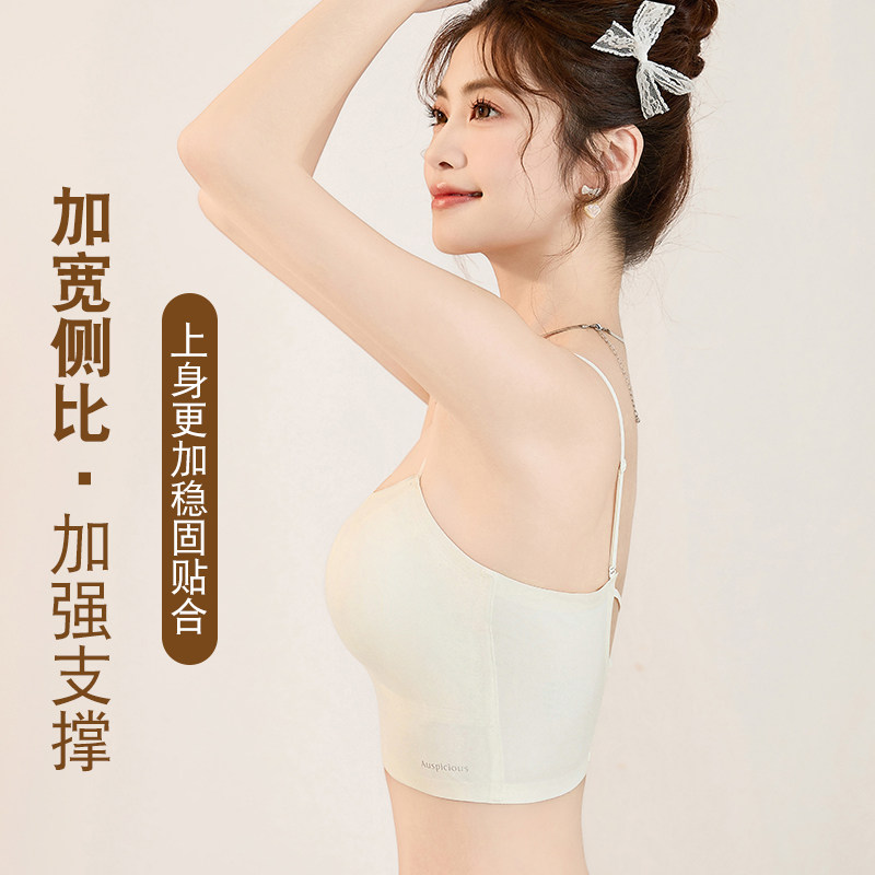 无痕美背抹胸内衣女小胸聚拢可外漏细肩带一体固定杯背心式文胸罩