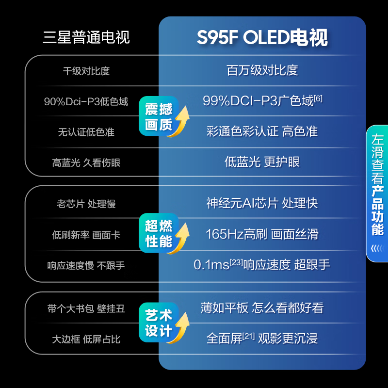 三星OLED电视机77S95F 83S90F 65S85F英寸超薄OLED 4K游戏电视机