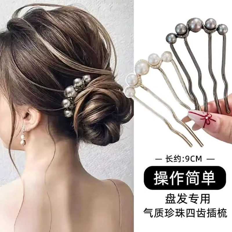 时尚发梳盘发固定器发夹女2025新款百搭四齿头发插梳发卡发簪发饰