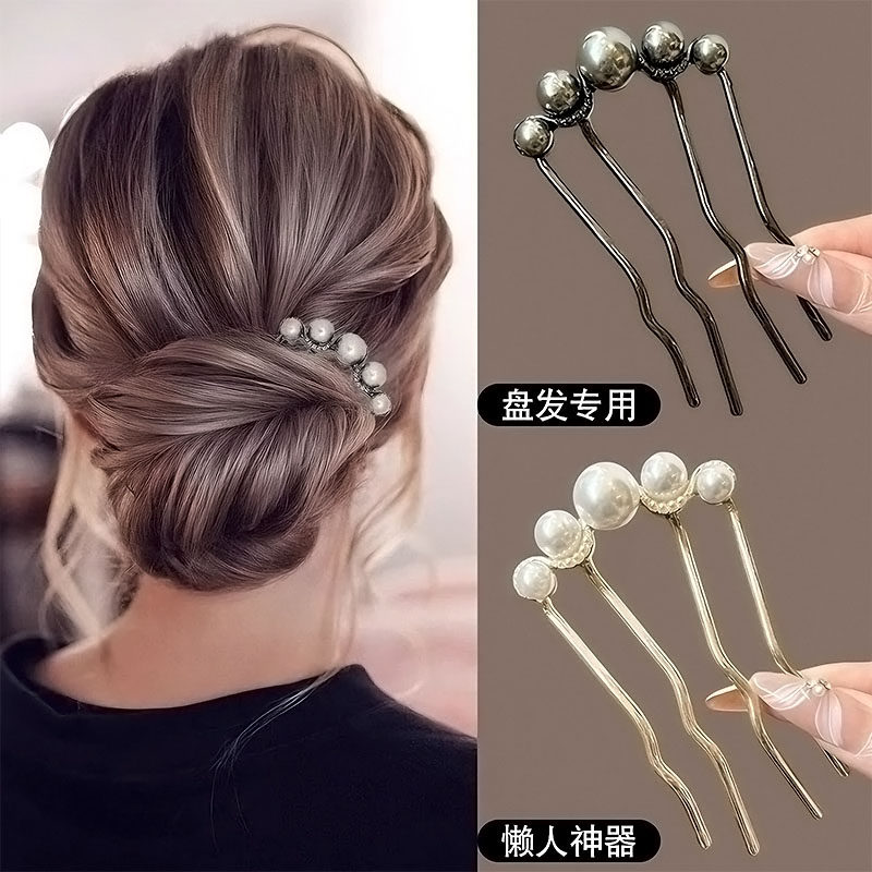 懒人盘发神器丸子头四齿插梳发梳发簪倒插发卡U形发夹造型头饰女