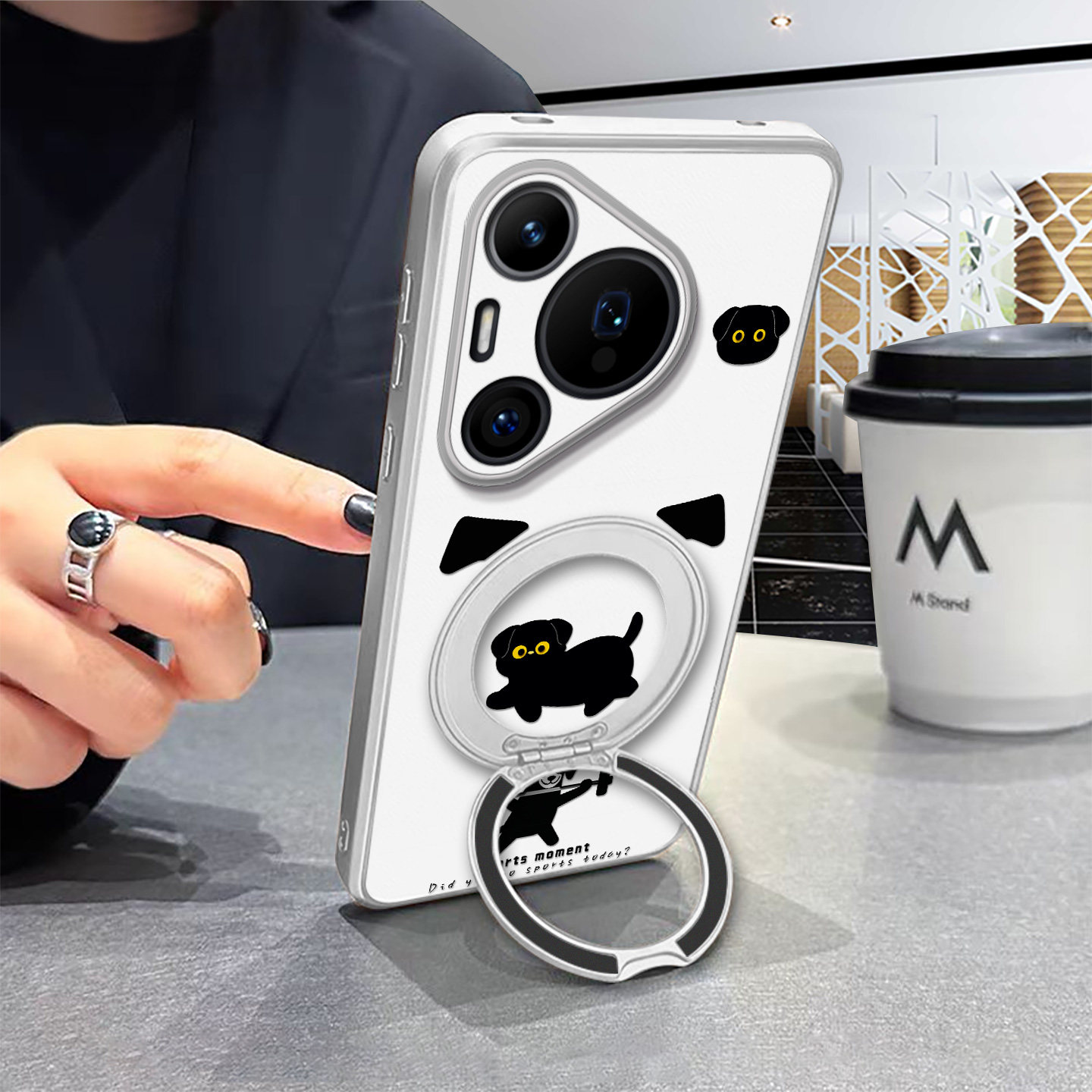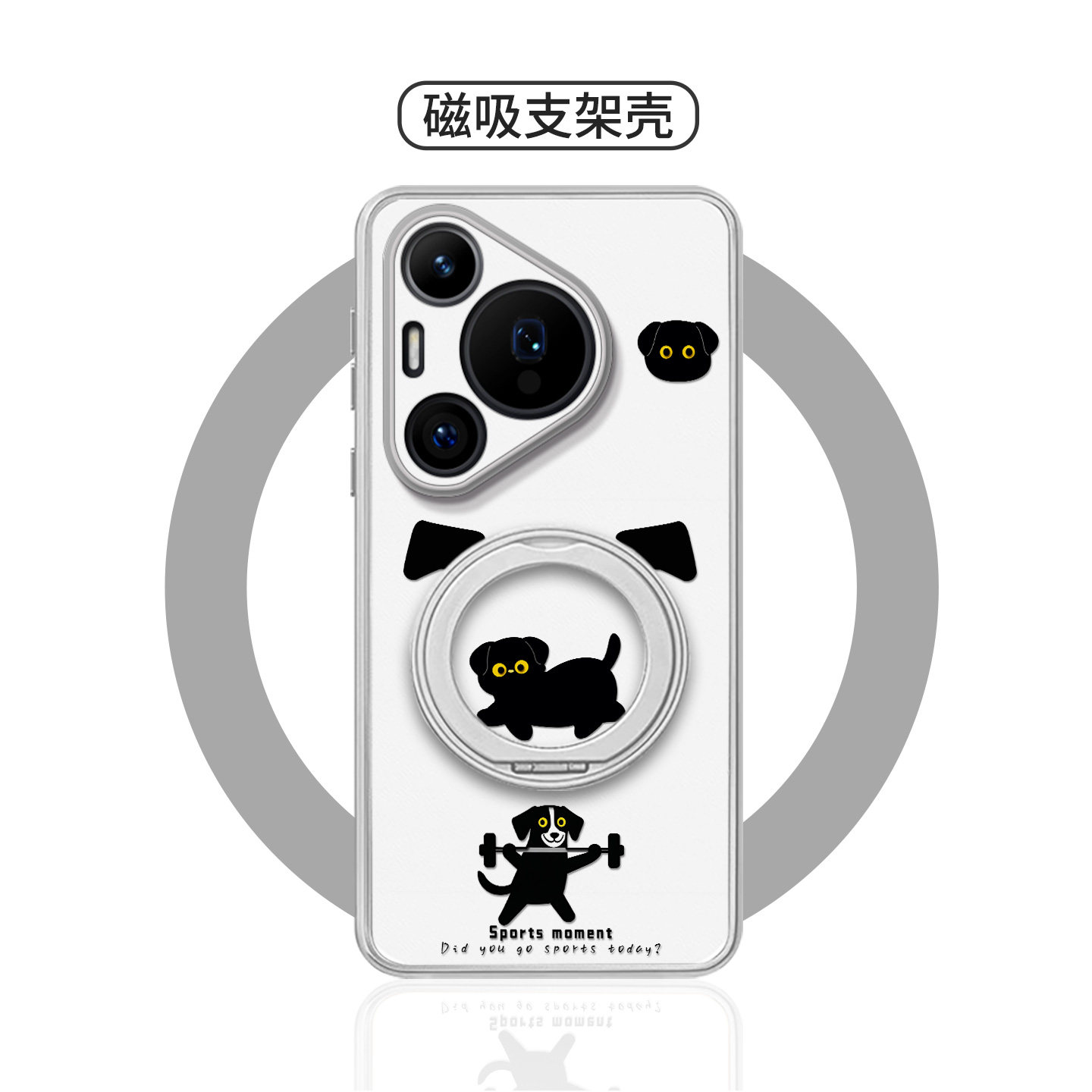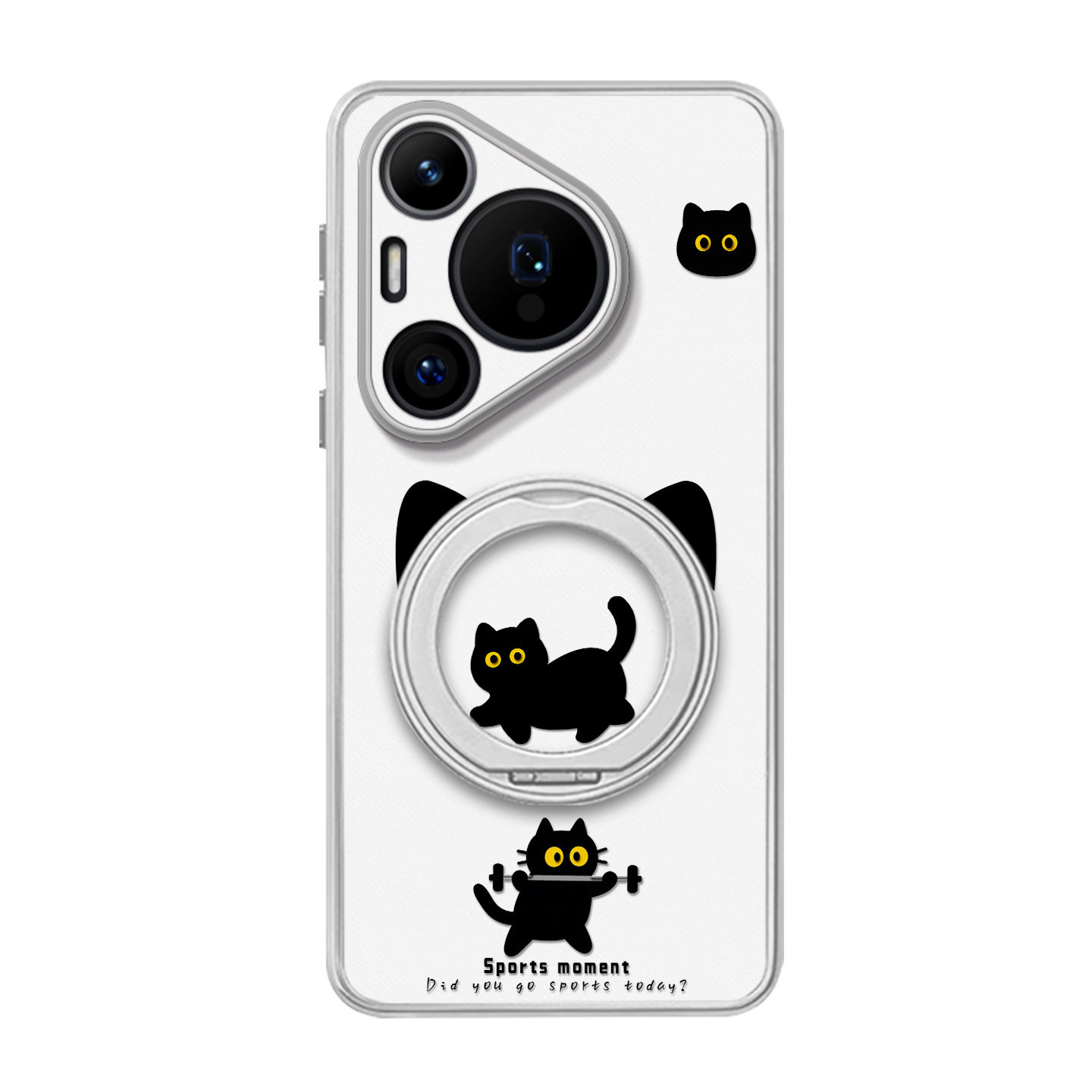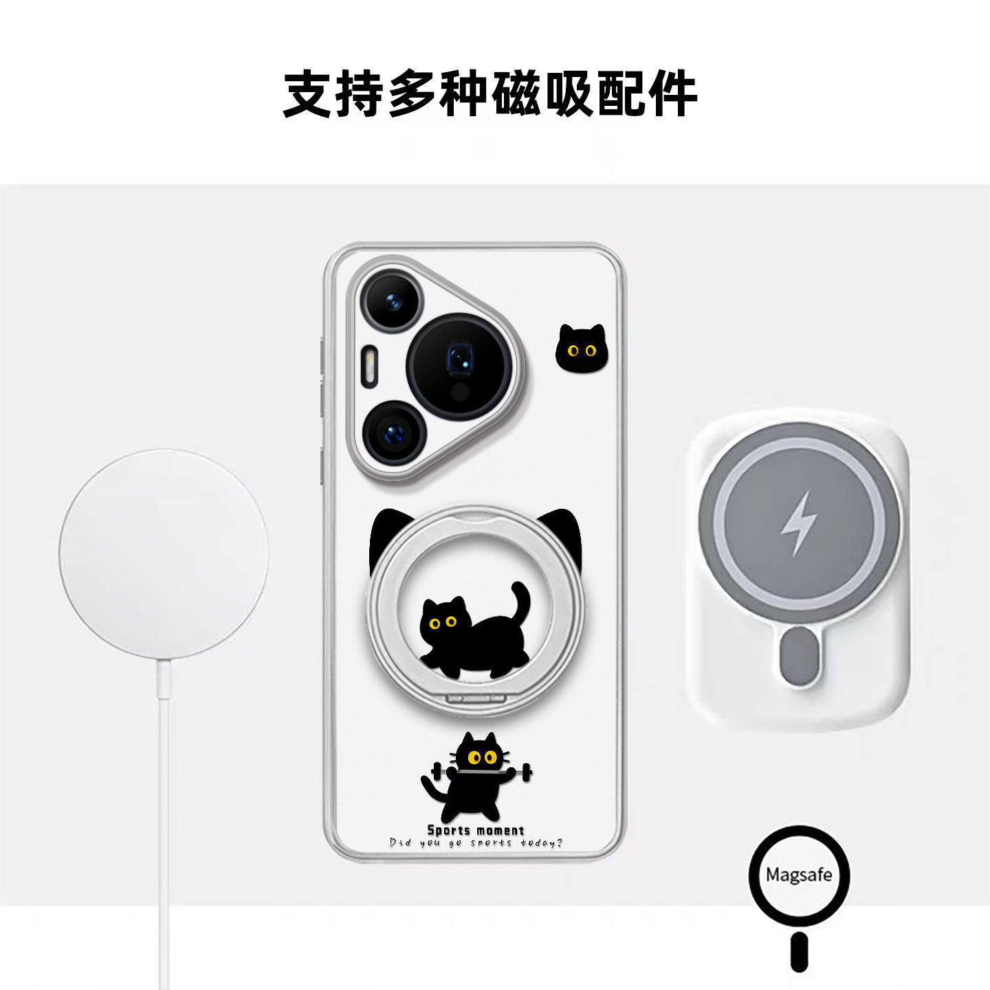 疯狂健身猫咪适用华为Pura70手机壳新款Pura70Pro卡通P50高级pura80Pro磁吸支架P60皮纹全包防摔壳