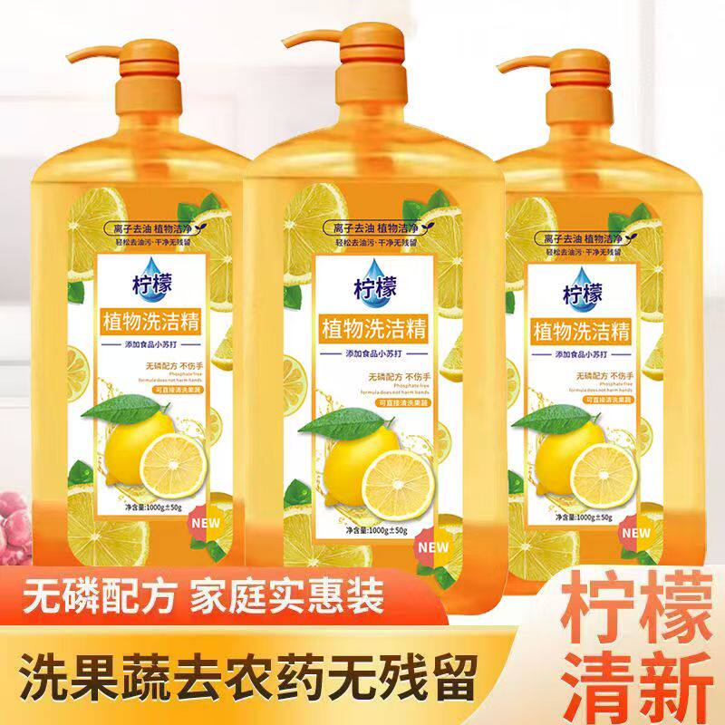 冷水柠檬洗洁精厨房不伤手洗碗餐具果蔬净家庭装大桶按压式去油