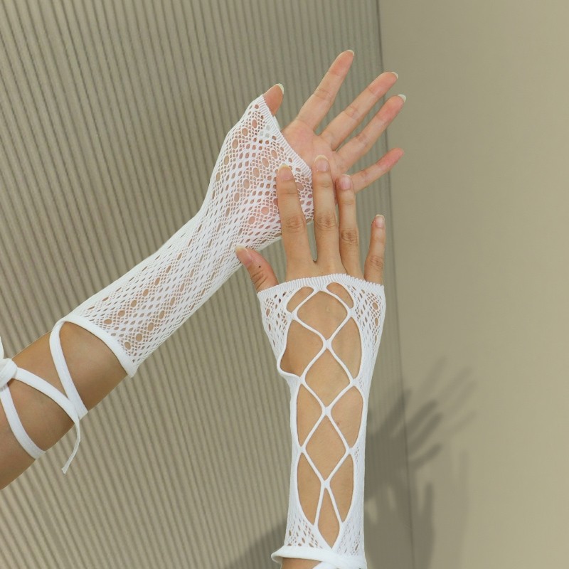 Y2K千禧辣妹防晒蕾丝带芭蕾风甜美渔网面系绳女手套半指袖套