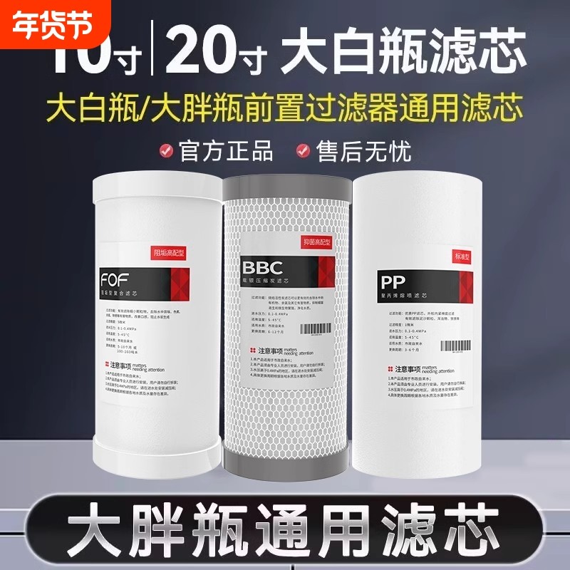 大白瓶前置过滤器通用滤芯PP棉复合活性炭阻垢滤芯大蓝瓶滤芯更换